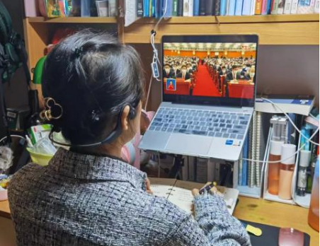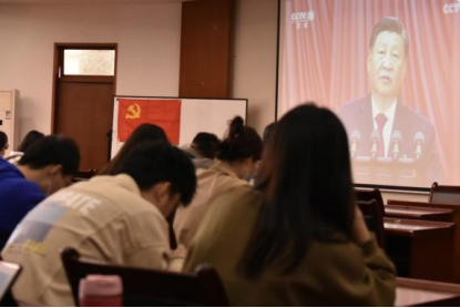 在收看党的二十大开幕会过程中,同学们认真听取习近平总书记的报告,全神贯注做笔记。大家一致表示,必须把学习好、领会好、贯彻好、落实好党的二十大精神作为最重要的政治任务。会后还将以各种形式认真学习,务必做到学深悟透、入脑入心。