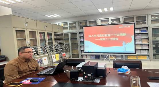 团省委青年讲师团成员、BB贝博官网青年教师步洋洋副教授以《深入学习贯彻党的二十大精神-----聚焦二十大报告》为题,从二十大报告主要内容,全面依法治国、推进法治中国建设,坚定不移全面从严治党,青年兴则国家兴等四个方面分享了学习党的二十大精神的心得体会。