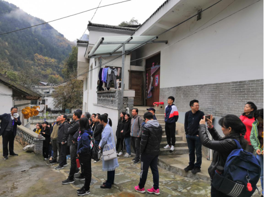 沿着袁家沟口村的青石板路,一直走到了鄂陕边区苏维埃政府旧址,小学校长曾庆林作为义务讲解员,带领大家重温了红色记忆。山阳县小河口镇袁家沟口村是陕南地区最早建立党组织的红色热土之一,八十多年前红二十五军在这里开展了艰苦卓绝的革命斗争,很快得到了群众的拥护和支持,鄂陕革命根据地、鄂陕边区最高政权也在这里成立,主力红军撤出后,国民党地方保安队和民团对根据地进行疯狂报复。为了保卫根据地和巩固新生的红色政权,苏维埃主席程家盛、副主席阮英豪、被誉为“满门忠烈”的委员张智仁全家四口人,以及60多名苏维埃政府干部惨遭杀害。
