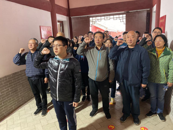 师生党员在鄂陕边区苏维埃政府旧址前合影留念