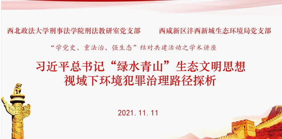 根据BB贝博艾弗森官方网站刑法教研室党支部与沣西新城生态环境局党支部达成的《2021年度“学党史、重法治、强生态”结对共建活动方案》精神,刑法教研室党支部与西咸新区沣西新城生态环境局党支部于2021年11月11日共同开展“习近平生态文明思想视域下环境犯罪治理路径探析”的专题党史学习讲座。BB贝博艾弗森官方网站党委书记孙学龙同志主持会议,BB贝博艾弗森官方网站国内合作与校友工作处刘霖杰处长参加了会议。本次讲座邀请BB贝博官网2002级校友、西咸新区沣西新城生态环境局党组书记、局长赵波同志和刑法教研室党支部书记、副主任汪鹏同志担任主讲人。