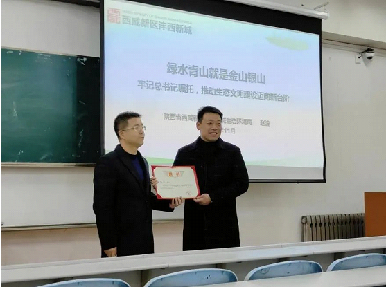 活动第二部分,由西咸新区沣西新城生态环境局赵波局长做了题为《绿水青山就是金山银山——牢记总书记嘱托,推动生态文明建设迈向新台阶》的主题报告。赵波局长围绕总书记关于生态环保的重要指示,从生态环境的战略地位、生动实践以及建设思路三个方面全面总结了我国在生态多样性、可持续发展、协调发展等方面的主要经验。赵波局长首先介绍了沣西新城生态环境建设“中深层地热能无干扰供热技术”。该技术以地热能利用为特色的新型城市综合能源供应“沣西模式”进一步发展成熟,服务北方地区城市建设,为加快实现碳达峰、碳中和目标发挥了引领示范作用。其次介绍了沣西新城作为联合国教科文组织全国生态水文试点、国家级生态文明先行示范区、国家首批气候适应性城市试点、国家首批海绵城市的主要经验:将城市设计与环境保护协调发展为目标,以四级城市雨水循环体系建设和中央雨洪调蓄系统建设为出发点,形成社区、道路、湿地公园等有序布局的新型城市发展道路。