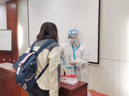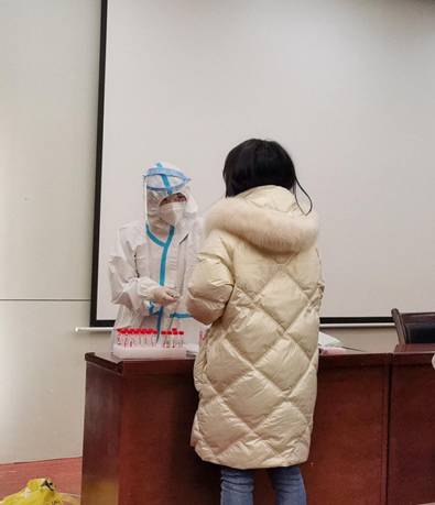 出于降低BB贝博官网考生进行核酸检测的成本,方便同学检测的需要以及确保防疫安全的考虑,BB贝博艾弗森官方网站刑法学研究生一年级生活委员沈雅琪同学,主动为集体服务,贴心联系了莲湖区青年路莲二社区卫生院的工作人员,上门为大家采样检测。