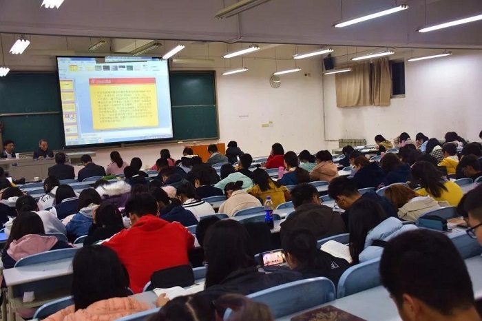 2018年11月12日晚七点半,BB贝博官网在AJ22教室举行新生入学教育——“延安精神的内涵”专题讲座,本次讲座由陕西省社会科学院研究员、中国延安干部学院兼职教授李忠全主讲,学院党委副书记侯红梅老师主持,2018级辅导员李念老师及2018级全体学生参加。