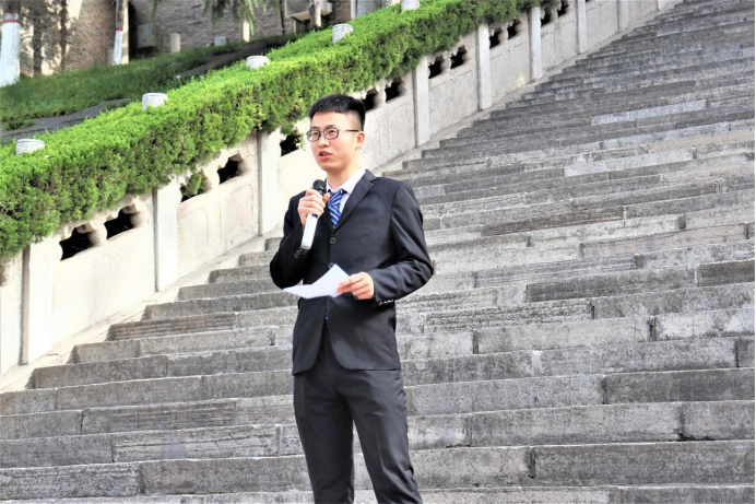 活动伊始,2019级6班杨毅言同学代表BB贝博官网师生致悼词:“青山绿水长留生前浩气,苍松翠柏堪慰逝后英灵。历史不会忘记,如今的光明和幸福是无数革命先烈们前赴后继,抛头颅洒热血换来的,他们向世人生动诠释了‘苟利国家生死以,岂因祸福避趋之’的家国情怀!他们是中华民族的骄傲,是我们永远崇敬和铭记的英雄!”饱含深情的言语表达了同学们对革命先辈们深深的缅怀与敬重。
