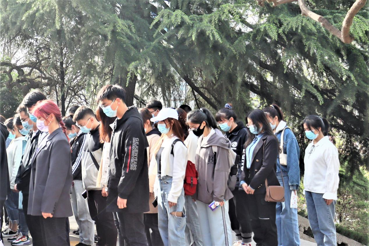 随后,学生代表向杨虎城将军敬献花束,表达对杨将军诚挚的哀悼与追思。在庄严肃穆的纪念碑前,师生集体默哀三分钟,大家静静地追思,深深地缅怀,把最深情的思念和最崇高的敬意献给我们的革命先烈。